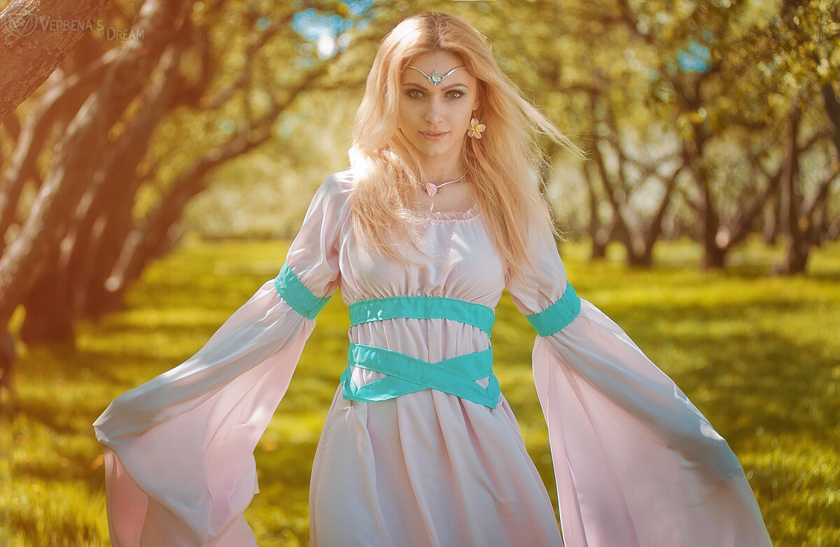 Именно такие мысли рождались у меня в голове, глядя в окно на оттаивающую природу, на зацветающие за окном молодые побеги на деревьях и пробивающуюся сочную молодую зеленую травку. И захотелось мне сделать чего-то эдакого же по настроению, нежного, цветущего, благоухающее как легкое дуновение весеннего ветерка. И родился этот образ - юной весенней эльфийки в нежно-розовом воздушном платье, вокруг которой все цветет и благоухает. Снимать мы конечно же побежали его в цветущий яблоневый сад, подгадывая нужное время цветения. И до сих пор как смотрю на эти фото, чувствую запах цветущей вишни и яблони! модель, образ: Дарья Лефлер