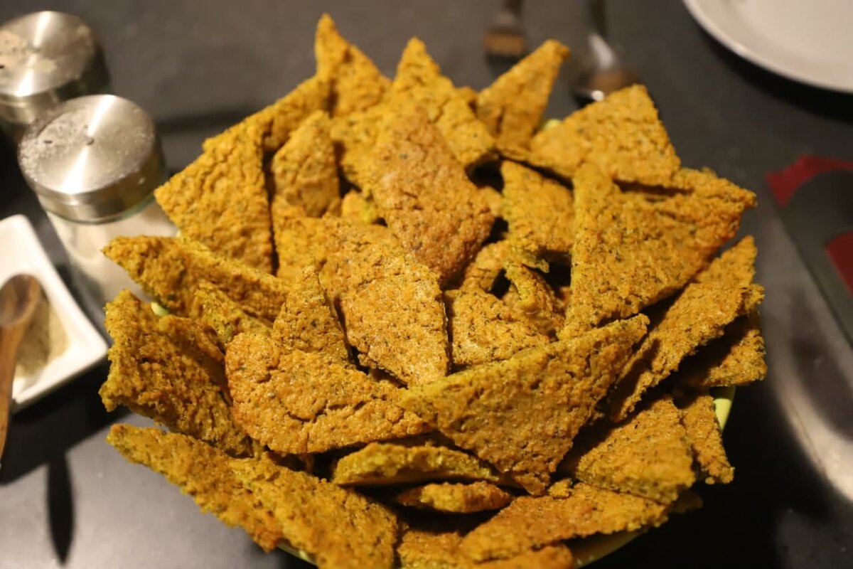 🌾 Состав: ▪️Красная чечевица- 500 г ▪️Масло горчичное/гхи ~ 3 ст.л. ▪️Вода ~ 200 мл ▪️Специи по вкусу: куркума, молотая сладкая паприка, лист пажитника, укроп сушёный, зира, асафетида, соль розовая. 🍴 Приготовление: ▫️ Мытую чечевицу замочить на пару часов, затем слить воду ▫️ Добавить все специи. Постепенно вливая воду, взбить блендером ▫️ Вылить тесто на силиконизированный пергамент ▫️ Выпекать при температуре 180 °C - 30 минут (1-й этап) ▫️ Нарезаем кусочками и отправляем в духовку до полной готовности 🏹Если задаться целью приготовить «живые хлебцы» в дегидраторе, чечевицу необходимо будет прорастить, затем, проделав вышеперечисленные шаги, сушить при температуре 40 ° до готовности. Приятного аппетита!