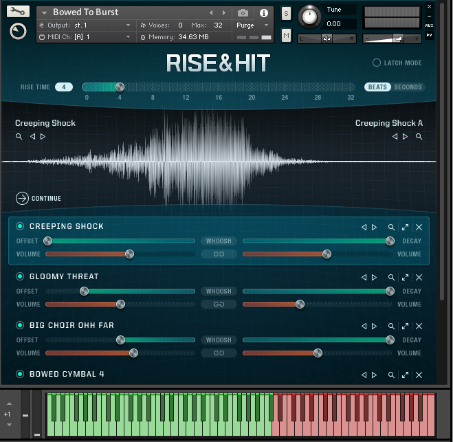 Клавиатура поделена на две части, левая часть это Riser права это Hit, то есть кульминационный удар. Вверху Rise time это как раз и есть размер по темпу и времени.