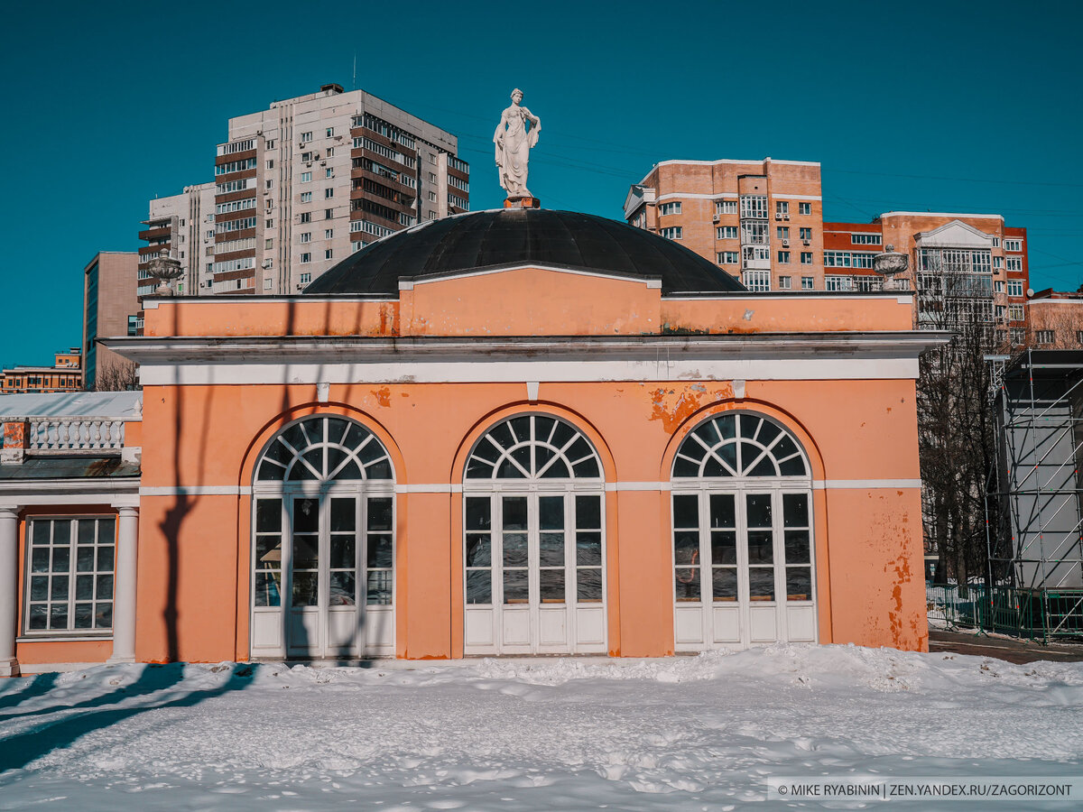Когда впервые попал в Central Park на Манхеттене, впечатлило то, что вокруг природного острова встали каменные джунгли, видные чуть-ли не с любого места парка. Не скажу, что Воронцовский парк точно такой же, но определенное сходство есть. Что замечаешь первым, когда гуляешь по парку? Что в каждый просвет между деревьями видна городская застройка, подступившая под самые стены парка. И она видна тоже почти с каждого места в парке. Пока нет зелени, которая спрячет детали, есть возможность поснимать серию фотографий, отражающих контрасты классической архитектуры усадьбы и новостроек, будь то старые или новые их формы. Однако могу сказать, что лучше бы вокруг парка стояли стеклянные свечки небоскребов. Было бы более прикольно, чем скудные на цвета и фактуры дома эпохи "архитектурного застоя". Впрочем, если дать застройщикам волю, то тоже налепят Бог знает что. Как можно вот так рядом строить "кубик Рубика" и какую-то овальную башню с космическими пентхаусами!? Такое разношерстье в рамках од
