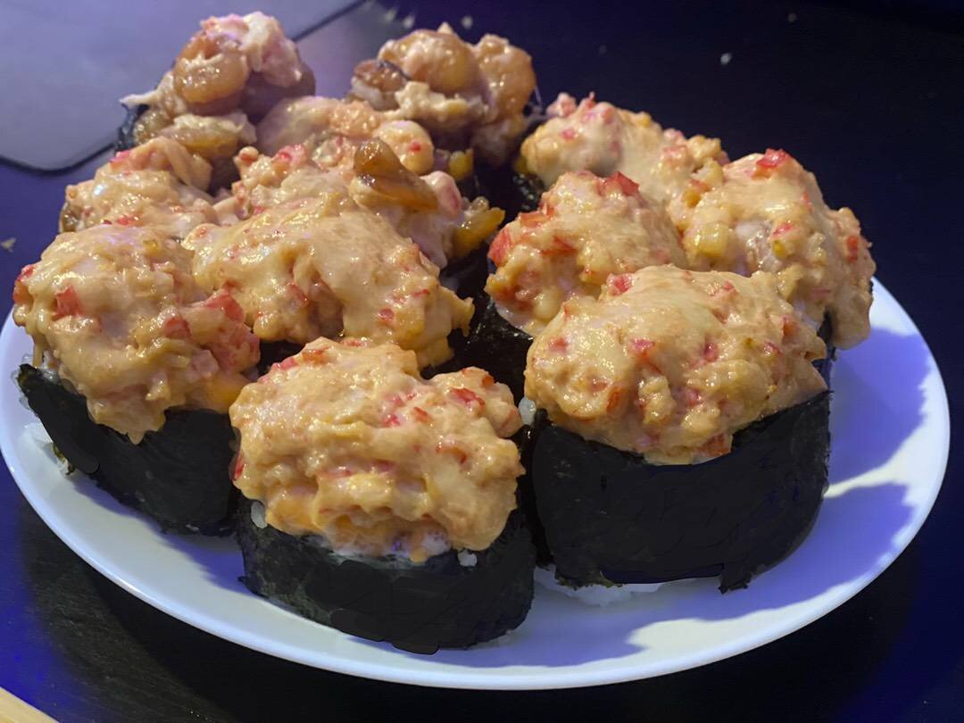 Облегчённая версия с которой справится каждый♥️ Надеюсь Вам понравится этот рецепт♥️ Буду благодарна за отзывы♥️ Ингредиенты: риса, воды, Листы нори, Заправка для риса:, рисового уксуса, сахара, соли, Начинка 1:, Филе сёмги, Начинка 2:, Креветок, устричного соуса, соевого соуса, чеснока, сливочного масла для обжарки, Шапочка:, крабовые палочки, соевого соуса, майонеза, крем-икры, любого мягкого сыра (например моцарелла) Способ приготовления: Рис отварить, немного остудить, после чего добавить заправку (предварительно смешать все ингредиенты) и тщательно перемешать. Начинка 1: Филе нарезать на мелкие кусочки. Начинка 2: Разогреть сливочное масло, после этого поместить в сковороду креветки и влить соуса, чеснок нарезать не нужно- кладём целые дольки. Обжариваем 5-7 мин. Шапочка: Крабовые палочки мелко нарезать, добавить все остальные ингредиенты и тщательно перемешать. Листы нори разрезать пополам и далее каждую половину разрезать на 3 полоски. Сформировать рис в овал и обернуть полоской