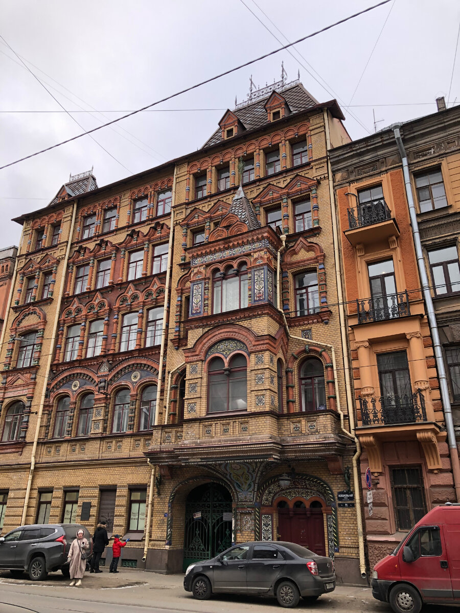 Наверное, все старые здания в Санкт-Петербурге - необычные. Но есть прям совсем чудесные :)! Один из них - дом архитектора Никонова 1901 года постройки, оформленный в неорусском стиле (ул.Колокольная, д.11, - недалеко от Невского проспекта, то есть самый центр :)). Что интересно: архитектор переделал по своему вкусу уже существующий дом. А декор фасадов был изготовлен в Миргородской художественно-промышленной школе имени Н.В. Гоголя в Полтавской губернии, с которой Никонов давно сотрудничал... В парадные мне попасть не удалось. Что я о них знаю? Никонов через несколько лет продал своё детище, а в 1917 году в здании разместились коммунальные квартиры. В 2009 году там был большой пожар. Судя по фотографиям в интернете, часть внутреннего убранства всё-таки сохранилась. Но во двор я всё-таки зашла! И меня очень впечатлила башня... Да и вообще двор воодушевляет ;)... Люблю такое! И ещё всякое удивительное из Санкт-Петербурга ;) -