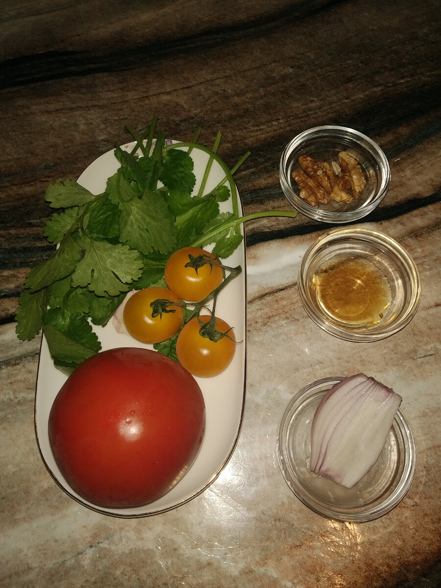 Сегодня закончилось чтение Великого покаянного канона Андрея Критского. Вообще сам канон очень большой - в нем 250 тропарей! Целиком он читается в середине поста, в этом году день канона выпадает на Благовещение, так что чтение канона переносится. А в первую неделю канон делился на 4 части, и читался в первые четыре дня поста. Андрей Критский - автор не одного десятка канонов, но этот - настоящая жемчужина! В нем он как бы общается со своей душой, погрязшей в грехах, и вспоминает всех грешников и праведников из Библии, чтобы у одних поучится премудрости, а у других - получить назидание, как нельзя жить. Я не специалист, есть специальные люди, которые тщательно изучали этот канон, и по их мнению он очень поэтичен. Соглашусь с ними! Рецепт же сегодня такой - его можно есть и в дни сухоядения, - салат, который я назвала "Грузинский" Ингредиенты: помидоры красные и жёлтые, красный лук, кинза, немного яблочного уксуса и грецкие орехи. В дни, когда можно масло, смело добавляем )) а также сол