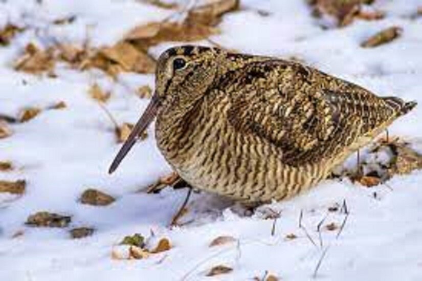 Тогда в средних и южных районах страны вальдшнеп появляется в большом количестве , задерживаясь иногда на длительное время . Отдельные экземпляры пролетного лесного кулика остаются в этих промежуточных районах подчас до ноября , и нередко можно встретить вальдшнепа в наших лесах даже после выпадения первого снега . И только тогда, когда мороз окончательно сковывает землю, вальдшнеп, лишенный возможности добывать себе корм , отлетает на юг к местам зимовки .