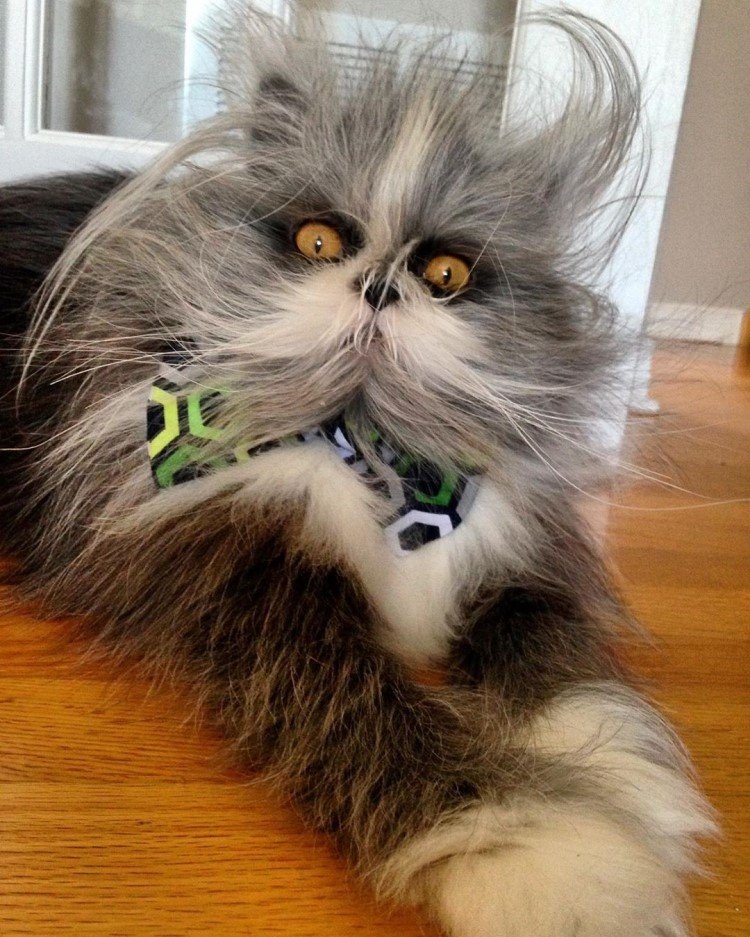Скорее всего Вы уже видели фотографии этого забавного и удивительно симпатичного кота. Из-за внешнего вида и безумного взгляда янтарных глаз его называют сумасшедшим учёным, Энштейном. А на самом деле он просто похож на многих лохматых киногероев. Но он не обижается и счастлив быть Самим Собой. Его настоящее имя Atchoum, что в буквальном смысле переводится как «Апчхи», он живёт в Канаде и умеет мурлыкать с французским акцентом. Возможно это незаметно, но за устрашающим видом скрывается милейший Персидский Котик, история которого началась давно, десятого мая 2016 года в Квебеке, Канада. Крошечного котенка подарили ветеринарному центру, где по счастливой случайности работала грумером его будущая приёмная мама, Натали. Девушка взяла котёнка домой на выходные. И за это время он так очаровал Натали, что она просто влюбилась в маленького сорванца. Что не удивительно. Натали решила забрать его домой, и там Чихун нашёл свой дом и семью, в лице двух взрослых людей, двух детей и трёх кошек. Одн