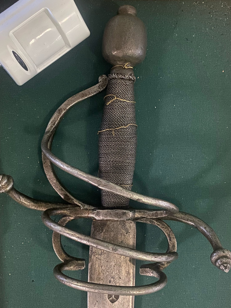 Называется он, конечно, военно-историческим музеем артиллерии, инженерных войск и войск связи, но такое длинное название никак не влезет в заголовок...) И да - этот цикл статей будет только про средневековое оружие ВИМАИВиВС, ракеты, пушки и мины XX века проходят уже по другому ведомству, не моему ) Итак, поехали! Западно-европейский меч начала XVII века. По крайней мере, так подписан. Привлек мое внимание сложной, мощной, но при этом асимметричной гардой, а также - совершенно плоским клинком. Ни долов, ни граней - никаких ухищрений, просто плоская полоса металла. Зато обратите внимание на мощь ажурных переплетений гарды. Это вам не латунь и не золотая и серебряная толстая проволока поздних шпаг - это стальная ковка! На такую гарду можно принять почти любой рубящий удар, хоть топором - ее не перерубишь. Хотя колющим пройти сквозь это ажурное кружево можно. Меч этот - солдатский. Принадлежал, скорее всего, какому-то наемнику, возможно, из тех, что приперлись в Россию с корпусом Делагард