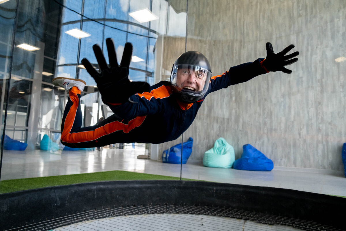 Описывать свой первый «прыжок» в аэродинамической трубе – это всё равно, что рассказывать кому-то про свой первый секс. - Ну как? - Эм… нуууу я ничего подобного ранее не испытывал… - А поконкретнее? - Короче, ты заходишь в трубу, ложишься и пытаешься нащупать каждой частью своего тела правильные движения. Главное всё делать плавно, не дёргаться. - Тебе понравилось или нет? - Ну да, но я не уверен, что у меня всё получилось. Надо будет ещё раз попробовать. Как-то так. Не ждите, что с первого раза вы взлетите под самый потолок и начнёте парить там, управляя своим телом, как опытный бодифлаер (так называют профессионалов этого вида спорта). Как я попал в аэротрубу? Мне 43. Возраст настоящей свободы, когда своим поведением уже никому ничего не нужно доказывать. Зато возникает острое желание попробовать всё, в чём отказывал себе до сих пор. Лет пять назад я смотрел, как причудливо «кризис сорока» проявляется у знакомых постарше. Один сбежал от бизнес-рутины в духовные практики. Другой совер