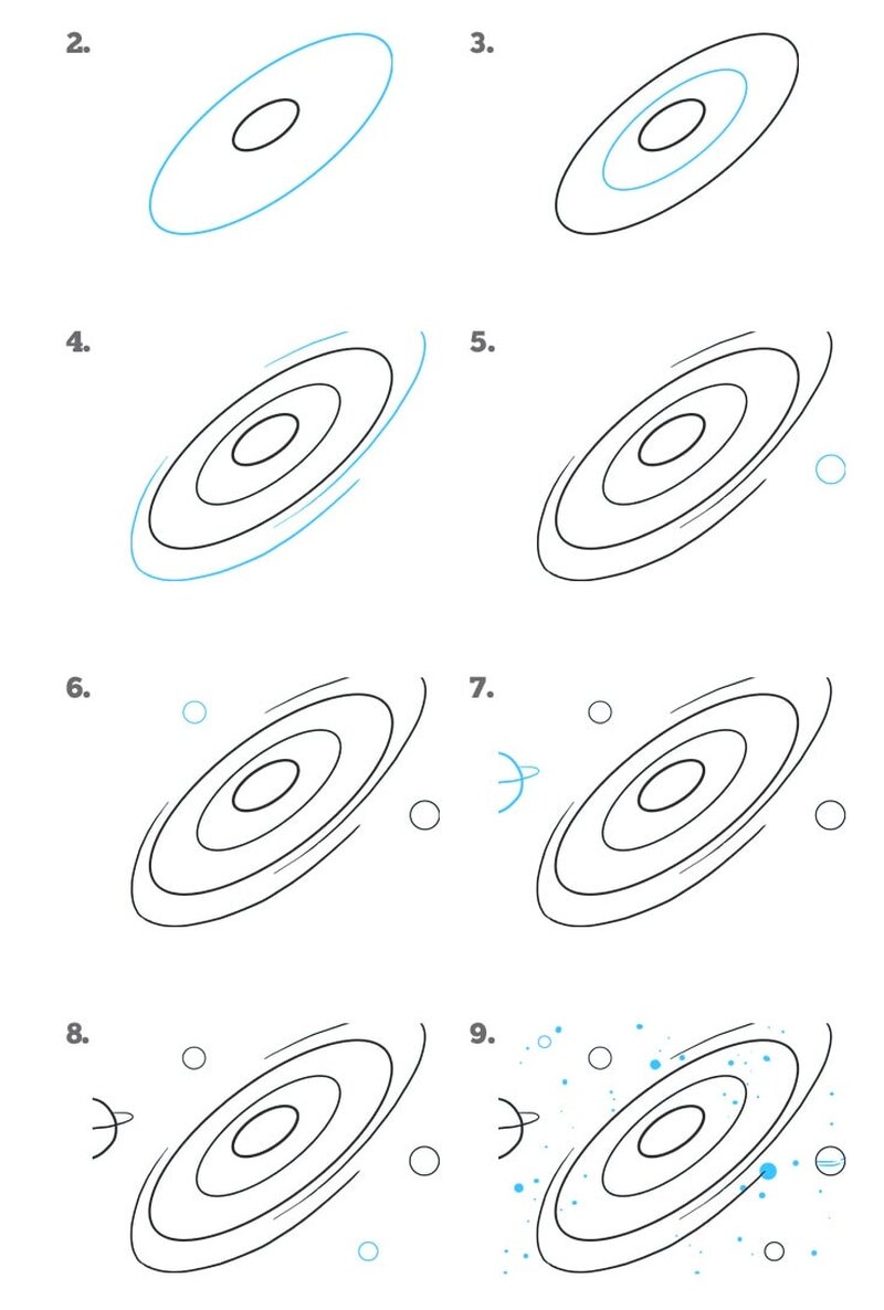Мы сделали подборку уроков поэтапного рисования космических объектов, чтобы вам осталось только подготовить художественные материалы и начать творить. Напоминаем, что это возможные варианты рисования, которые можно повторить, дополнить или поменять по своему желанию. Итак, берите в руки карандаши, краски или другие любимые материалы и начинаем. Как нарисовать галактику Как нарисовать Солнечную систему Как нарисовать планету Земля Как нарисовать ракету, космический корабль или шаттл Как нарисовать космонавта Рисуйте и загружайте свои работы на сайт Рисовашки.тв, ведь прямо сейчас у нас проходит большой конкурс детского рисунка “Таинственный космос — 2022”!