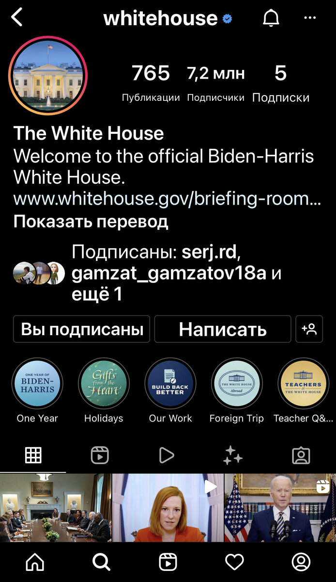 На странице Белого Дома в Инстограм е беда. Сотни тысяч россиян превратили его в российский чат. Они круглосуточно пишут в нем комментарии на русском языке. Рассказывают стихи, поют песни. Делятся кулинарными рецептами. Что вы думаете об этом безобразии?