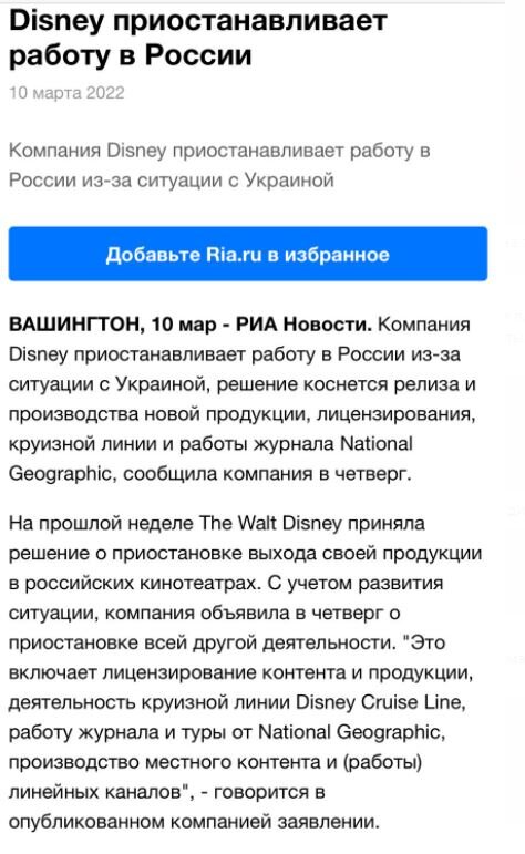 Кто бы мог подумать, что будут введены санкции против детей, однако вот, дождались. Компания Disney приостанавливает работу в России, это коснется не только выхода новой продукции - читай - мы не увидим новых мультфильмов, но и возможно старых. Как пояснили знающие люди, ведущие переговоры на тему проката изделий компании Дисней на нашем телевиденье - "фильмов Дисней не будет нигде на территории России". В том числе возможно изъятие из онлайн-кинотеатров. Лайффак, так сказать, для тех, у кого есть дети: Не выбрасывайте ДВД, посмотрите - есть ли у вас любимые вашими детьми мультфильмы, особенно полнометражные в сохраненном виде на компьютере. Только-только за 20 лет нас плавно и аккуратно подвели к привычке цивилизованно пользоваться платными платформами - и вот те раз, мы возвращаемся к торрентам... Торрент-трекер RuTracker пропал из реестра запрещенных в России ресурсов Популярный торрент-трекер RuTracker, заблокированный Роскомнадзором по решению Мосгорсуда в 2016 году, заработал