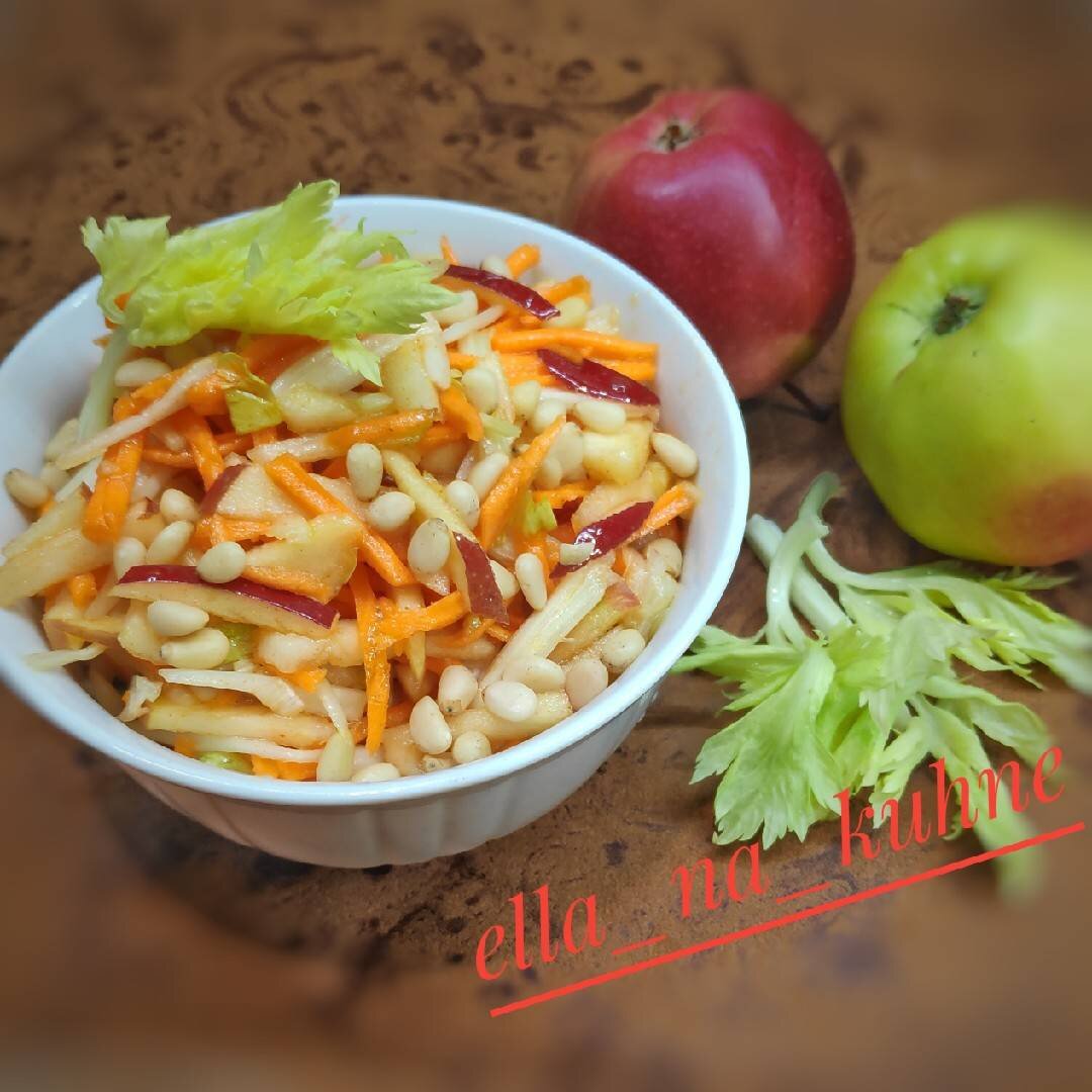 Ранней весной очень хочется свежих овощей. А яркий салат пробуждает аппетит, да ещё и глаз радует😁. #рецептбодрости #пост Ингредиенты: сельдерея, морковь, яблоко, Кедровые орешки, Для заправки:, молотой сладкой паприки, мёда, лимонного сока, растительного масла Способ приготовления: Морковь натереть на тёрке для корейской моркови. Сельдерей и яблоко нарезать соломкой. Приготовить заправку: соединить мёд, масло, сок и паприку. Хорошо перемешать. Перед подачей заправить, аккуратно перемешать и выложить в салатник и посыпать орешками. Приятного аппетита😍! Если вам по душе мои незатейливые рецепты: подписывайтесь и оставляйте свои фотоотзывы📸!