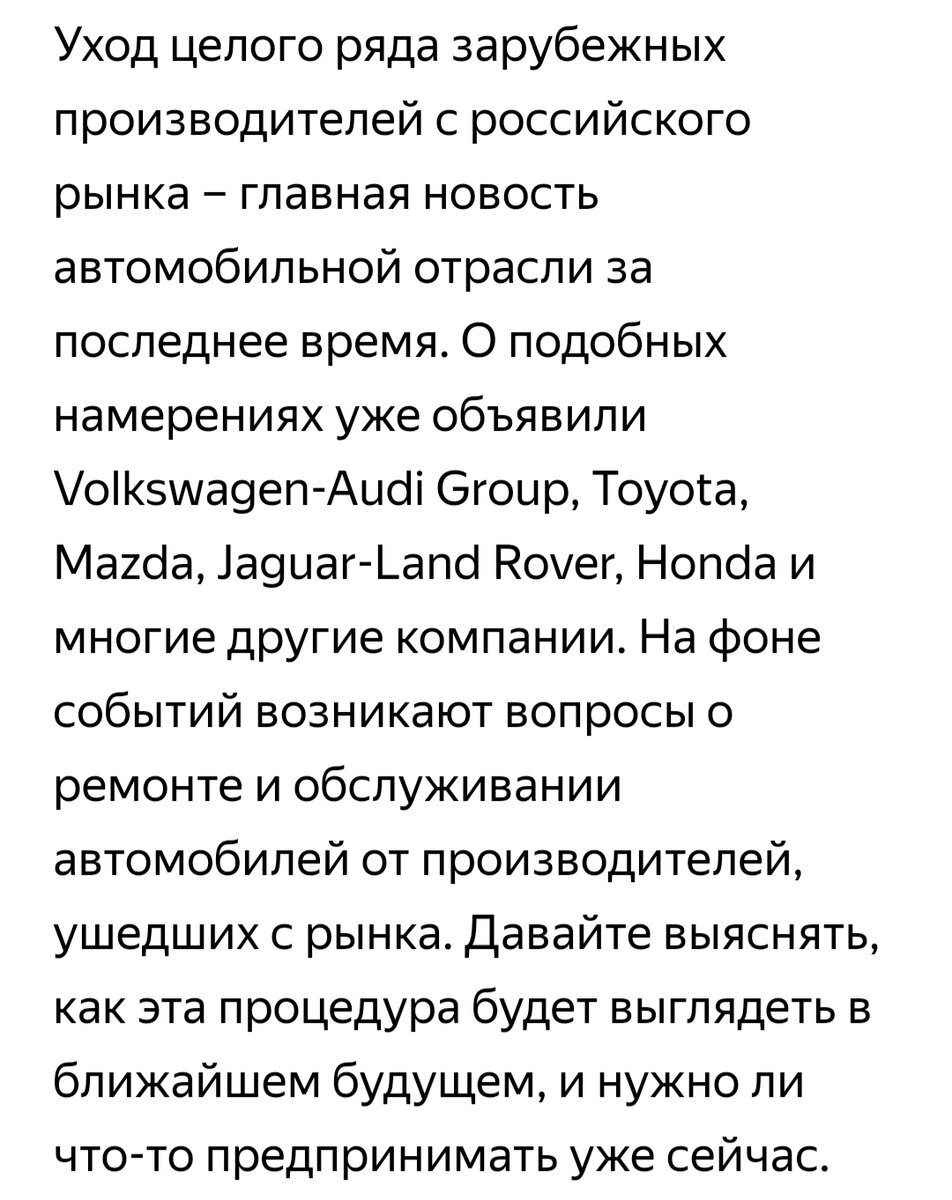 Некоторые авто производители ушли с нашего рынка, что же будет с запчастями и как их обслуживать?