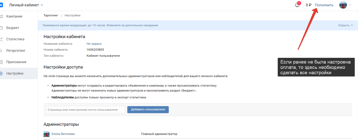 в Vk все просто, но надо выбрать как вы будете пополнять как юридическое или физическое лицо. Рассмотрим наиболее распространенный вариант - пополнение как физического лица: 1. Необходимо зайти в Vk, провалиться в рекламный кабинет и в правом верхнем углу нажать "Пополнить" 2. На этом этапе выбираем тип оплаты (физ или юр лицо) , ниже ставим галочку, что вы принимаете правила размещения рекламных объявлений и нажимаете "Продолжить". 3. Вбиваете нужную сумму, но не меньше 500 рублей и нажимаете "Перейти к оплате" 4. Здесь выбираете удобный для вас способ пополнения, заполняете поля и нажимаете "Оплатить " 5. Вот и всё - ваш рекламный кабинет пополнится на выбранную вами сумму. Как только пройдет транзакция вы ее увидите в правом верхнем углу. 6. Хочу еще отметить, в Vk физические лица не платят НДС в какой-либо форме — на баланс зачисляется и тратится ровно та же сумма, которая указана, без каких-либо дополнительных платежей.