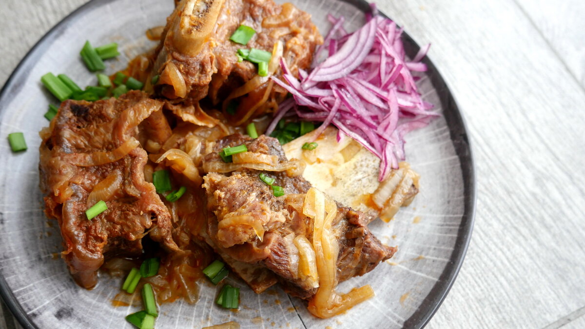 Мой любимый способ приготовления тушеных говяжьих ребер. Без воды, без масла