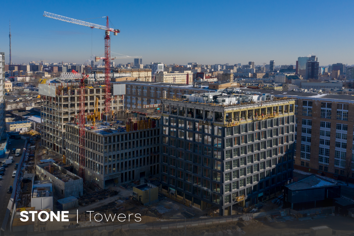Реализация премиального офисного квартала STONE Towers в Белорусском деловом районе продолжается непрерывно, и строительная готовность объекта растет. Монолитные работы в 100-метровой архитектурной доминанте Tower B вышли на новый этаж и сейчас ведутся на уровне 6-7 этажа. В клубном бизнес-центре Tower C завершаются монолитные работы на 9 этаже. Также на второй очереди STONE Towers начали кладку перегородок на 1 и 2 этажах. Продолжается и строительство первой очереди — премиального офисного здания Tower A для одной компании. Поставки иностранного оборудования выполнены. В башне установлены лифты Schindler, вентиляционное оборудование VTS и другие элементы инженерии международного уровня. Фасад готов уже на 60%, параллельно завершаются работы на паркинге — здесь уже нанесли разметку для организации движения автомобилей. Общая строительная готовность Tower A приближается к 80%, сдача в эксплуатацию планируется в III квартале этого года. Продолжение строительных работ, сохранение заявленн