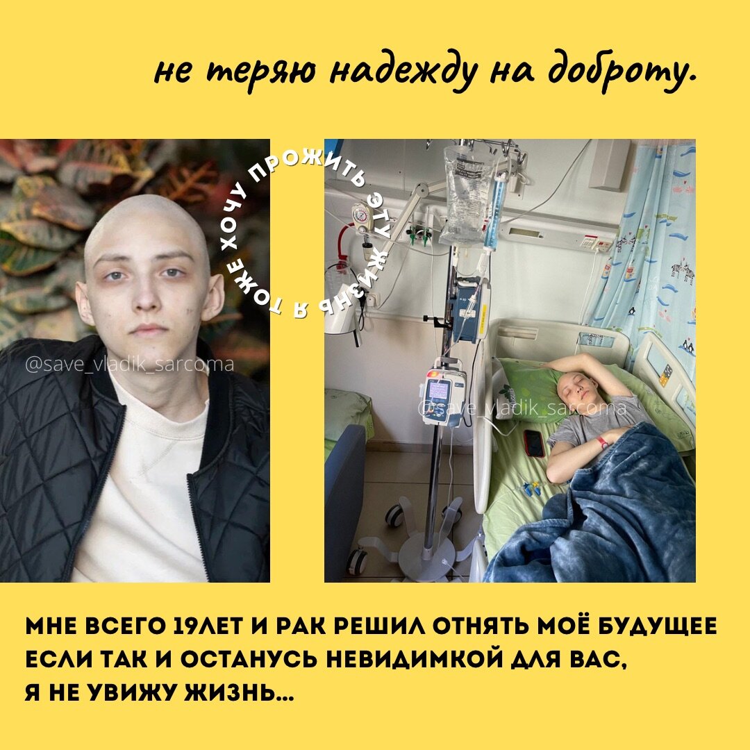 Здравствуйте. Меня зовут Владислав Лукин. Мне 19 лет, я родом из г. Донецка. В сентябре 2021 года я случайно обнаружил, что у меня появилось уплотнение в промежности. Сразу обратился в больницу.Заключение было на первый взгляд не особо страшным- доброкачественная киста. Врачи провели операцию,удалили новообразованние и отправили материалы на гистологию. Правильный диагноз с первого раза не удалось поставить. Пришлось выехать в Киев, чтобы сдать иммуногистологию, материал направили на исследования в лабораторию "OptiPath" (Германия). Ответ из лаборатории - альвеолярная рабдомиосаркома. После я прошёл много консультаций с онкологами. В итоге: «детский диагноз» у 18-летнего парня - редкий случай. Им должны заниматься врачи, специализирующиеся именно на этих видах сарком. В моём родном городе Донецке, к сожалению, таких нет. Сложность в лечении добавляет возраст, неблагоприятное месторасположение опухоли, её тип и результат удаления образования (с положительными краями (R1)). В социал