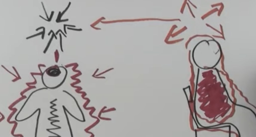 Многие думают, что страх - противоположность любви. Я с этим не согласен, потому что любовь - всеобъемлющая, то есть страх – часть любви. Можно называть его ответвлением любви. К тому же, страх не абсолютное зло. У него есть разные стороны, как у всего – положительные и отрицательные. Положительная сторона страха - это выброс адреналина, который необходим, чтобы справиться с опасной ситуацией. Но по сути, страх - это предположение, что мы на сто процентов знаем, что именно для нас и других в будущем будет лучше. А это, разумеется, безумие, потому что никто не знает, какой опыт нам нужно испытать и где оказаться. Но наше эго уверят нас, что мы знаем, а неизвестное заставляет нас бояться. Давайте же рассмотрим простую технику, как можно научиться обращать негативное чувство страха в позитивное. Мы знаем, что страх - это заболевание... эмоций. Спазмы в желудке, сердце уходит в пятки. Это страх. Заразная эмоция. Он начинается с ощущения, растекающемуся по нашему телу. Вот наше ощущение. Ст