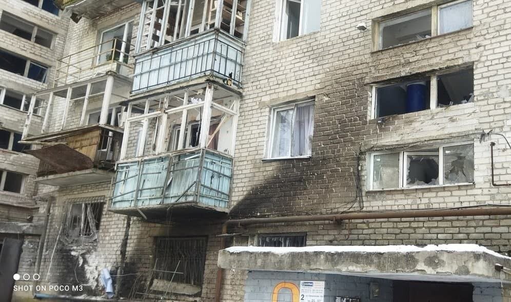 Так выглядит после сегодняшнего обстрела ракетами «Града» дом 41-а на Кремлевском проспекте Донецка.