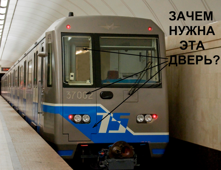 Частенько замечал, что на головных вагонах метро дверей больше, чем на обычных. Так например если взглянуть на кабину машиниста поезда метрополитена, то можно увидеть довольно странную дверь, которая по всей видимости зачем-то нужна. Она расположена прямо на "морде", и как бы к платформе она не ведёт, поэтому возникает вопрос: зачем её вообще делать?