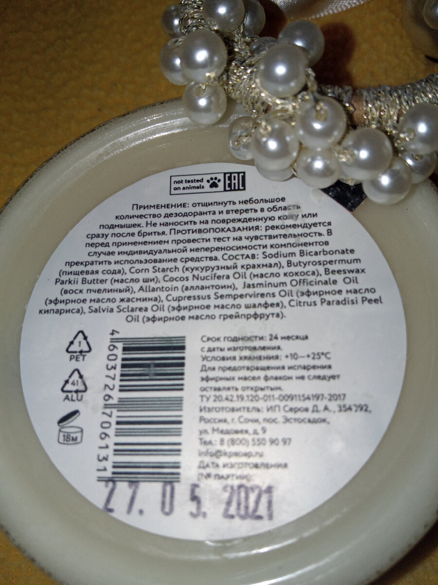 Недавно я начала искать дезодорант среди натуральных средств. Но здесь меня поджидали долгие муки выбора. Если по составу мне подходили многие средства, то по отзывам людей, использовавших их, выяснялось, что многие из дезодорантов абсолютно не справляются с поставленной задачей, запах пота становится настоящей проблемой. Я не хотела отказываться от поставленной цели все таки найти натуральный дезодорант, и уже в момент, когда поиски зашли в тупик, я наткнулась на положительные отзывы о дезодоранте от Краснополянской косметики. Запах Жасмина мне показался подходящим, и я заказала его. И, честно сказать, я в полном восторге!!! Запах прекрасный, натуральный и не резкий, пахнет травами и цветами!!! После душа подсушиваю кожу и наношу дезодорант как крем. Читала, что у многих он осыпается, и требуется долгое время, чтобы привыкнуть к нанесению средства. Так, у меня это получилось с первого раза. Необыкновенно удобно! Просто не стоит брать средства слишком много, лучше потом добавить!Дезод