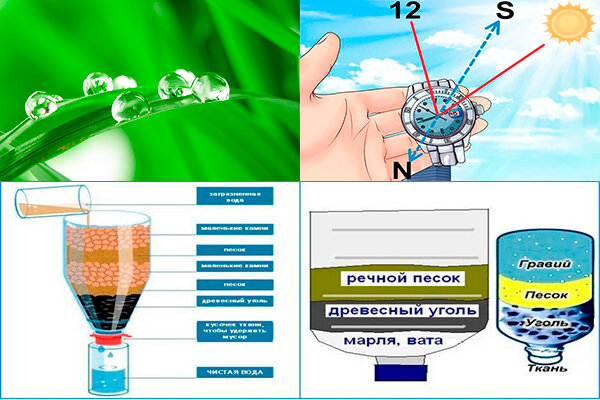 Иногда полезно знать несколько простых лайфхаков, которые можно использовать, если вы окажетесь в одиночестве на природе. 1. Соберите утреннюю росу Чтобы выжить, вам прежде всего нужна вода. Хорошим его источником является утренняя роса. Просто соберите его кусочком ткани с деревьев и травы. Когда ткань станет влажной, выжмите воду в рот. Как вариант, если на улице тепло, можно просто обмотать ноги куском тряпки и потом ходить по траве. 2. Используйте листья, чтобы согреться Листья являются хорошим теплоизоляционным материалом. Ночи могут быть очень холодными, поэтому вы можете использовать их, чтобы согреться. Например, набить листьями куртку или сделать из них одеяло. Кроме того, они хороши в качестве спального мешка. Это намного лучше, чем спать на земле. 3. Сделать фильтр для воды Если у вас есть пластиковая бутылка, вы можете сделать фильтр для грязной воды своими руками. Сначала проделайте отверстие в крышке бутылки. Затем разрежьте бутылку. Положите внутрь траву, камни, углии вс