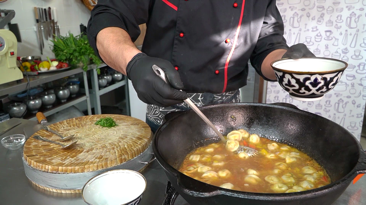 Домашние пельмени по узбекски называются - чучвара! Сначала давайте приготовим тесто, а потом будем заниматься начинкой. Тесто для пельменей Для теста нам понадобится 500 мл воды, размешаем в ней 1 столовую ложку соли. В жидкость добавляем 2 столовые ложки оливкового масла. В емкости с мукой, делаем углубление в середине и добавляем 1 куриное яйцо. Понемногу добавляем воду и замешиваем тесто для пельменей. Формируем из получившегося теста колобок и отправляем его отдыхать в полиэтиленовый пакет. Теперь начнем делать фарш для наших будущих пельменей Фарш на пельмени лучше всего делать через мясорубку с мелкой сеткой, тогда формирование маленьких пельмешек для чучвары будет намного легче. Пропорция для фарша должна быть такая.