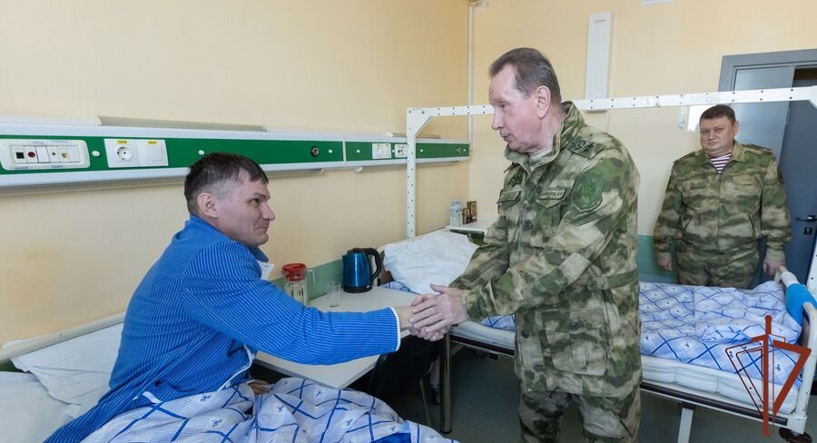 Директор Федеральной службы войск национальной гвардии Российской Федерации генерал армии Виктор Золотов посетил Главный военный клинический госпиталь войск, где вручил орден Мужества офицеру Росгвардии из Иркутска полковнику полиции Денису Степанову, отличившемуся в ходе специальной военной операции. Подразделение под командованием полковника полиции Дениса Степанова попало под плотный минометный огонь. Офицер Росгвардии получил ранение, но продолжил управлять личным составом в бою с превосходящими силами противника. Своими четкими действиями он обеспечил выход подразделения из-под огня националистов и организовал эвакуацию раненых товарищей в тыл. Всего с начала специальной военной операции указом Президента Российской Федерации высоких государственных наград были удостоены более 20 росгвардейцев.