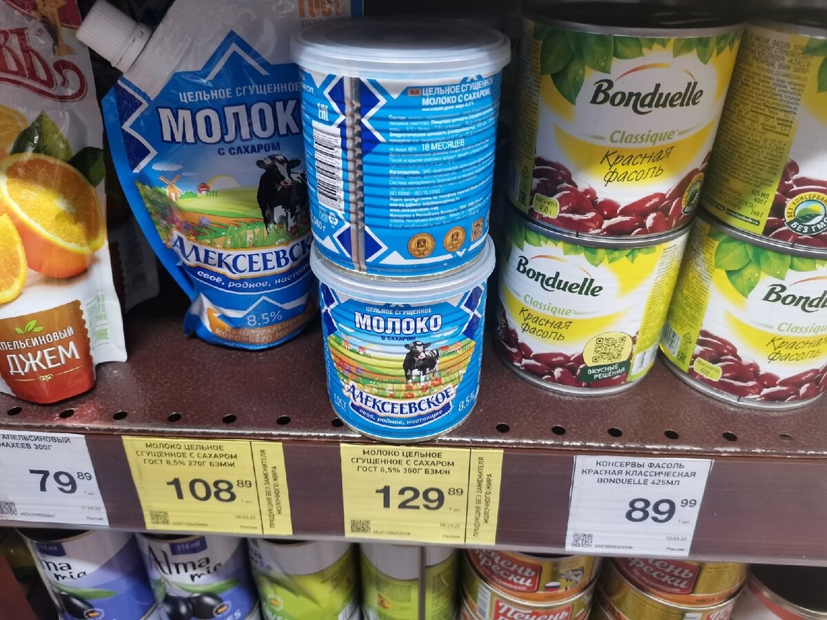 Не думала, что именно сгущенное молоко "Алексеевское" станет дороже, но я вижу определенные изменения. Я в последний раз покупала его недели две назад, тогда банка стоила менее ста рублей (как раз 99 или около того), а сейчас уже и в мягкой упаковке такой продукт обойдется в 108 рублей.