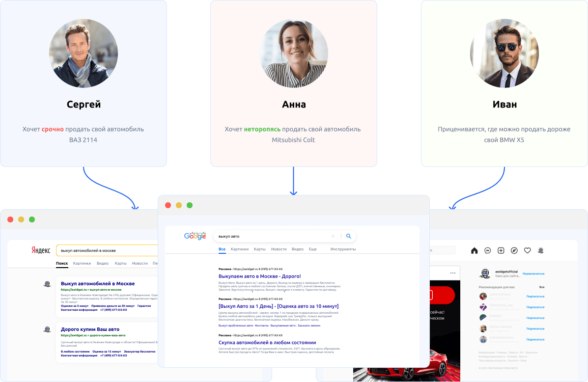 Дочитав эту статью до конца, Вы узнаете о том, как перестать заниматься поиском людей, которые хотят продать свой автомобиль и о том, как начать ежедневно получать от 10-60 заявок на свою услугу ВЫКУП АВТО, внедрив за 1 день проверенную связку «квиз-сайт Awidget + контекстная реклама». Связка работает в любом регионе России и СНГ. ДЕТАЛИ ПРОЕКТА К нам в агентство по рекомендации обратился Сергей, который более 7 лет занимается выкупом и продажей автомобилей в Нижнем Новгороде. У него есть одностраничный сайт лендинг и запущена реклама. Заявки с сайта есть, но их очень мало и обходятся дорого. ЦЕЛЬ 1) Создать стабильный поток ежедневных заявок от людей, которые хотят продать свой автомобиль в городе Нижний Новгород. 2) Снизить стоимость заявки до комфортной суммы 150-300 рублей. РЕШЕНИЕ Имея опыт в нише ВЫКУП АВТО, мы внедрили Сергею проверенную связку «квиз-сайт Awidget + контекстная реклама». ЧТО ЭТО И КАК РАБОТАЕТ 1) КЛИЕНТЫ. Люди, которые хотят продать свой автомобиль видят Вашу рек