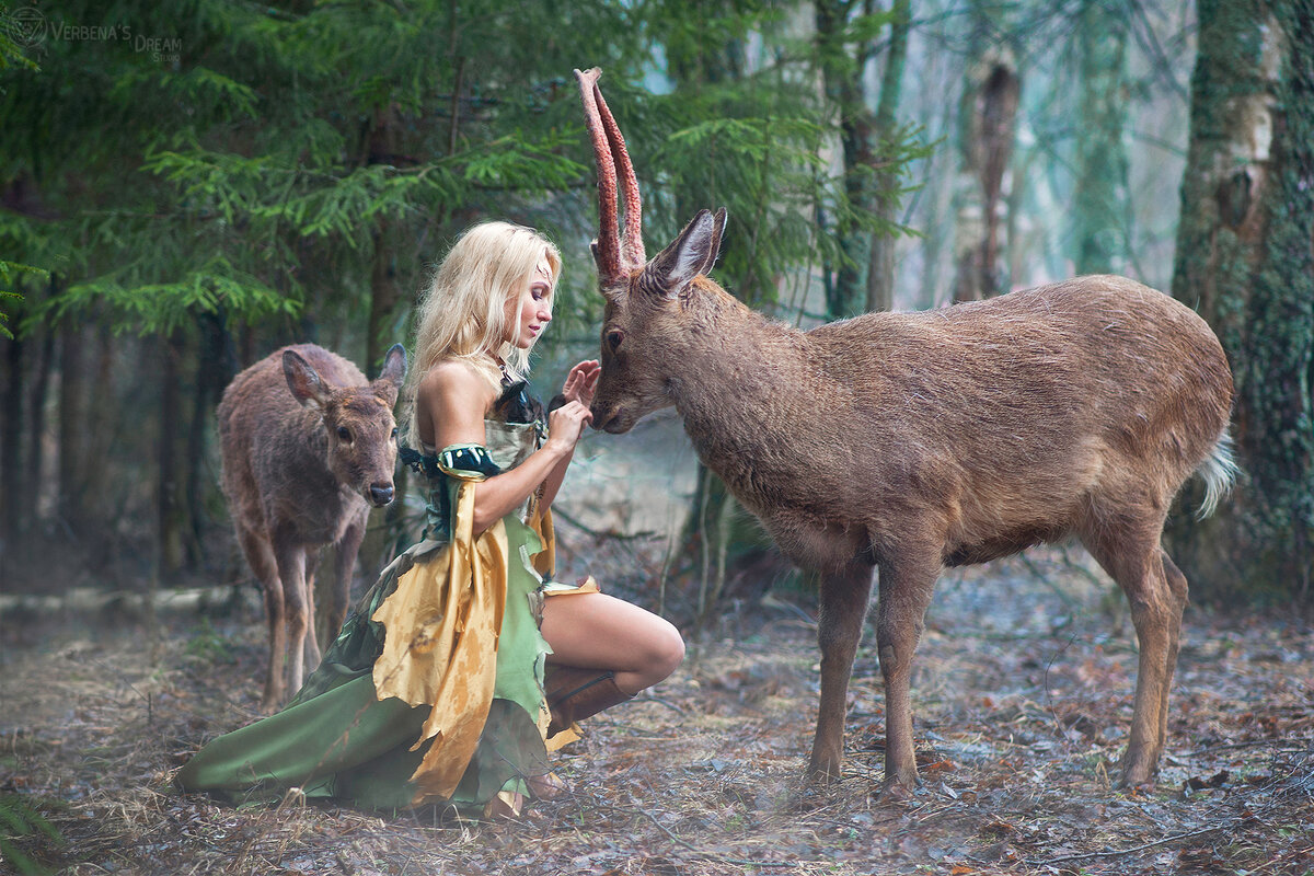 Небольшая осенняя зарисовка в эльфийском стиле: у нас был морозный осенний лес, пара ручных лесных осеней и абстрактный эльфийский образ - мы развлекались как могли))) Олени оказались очень дружелюбными ребятами, особенно самочка - крайне трепетное и чуткое создание. Парень же проявлял истинно мужскую основательность, но против угощения все равно не мог устоять))) Модель, образ: Дарья Лефлер