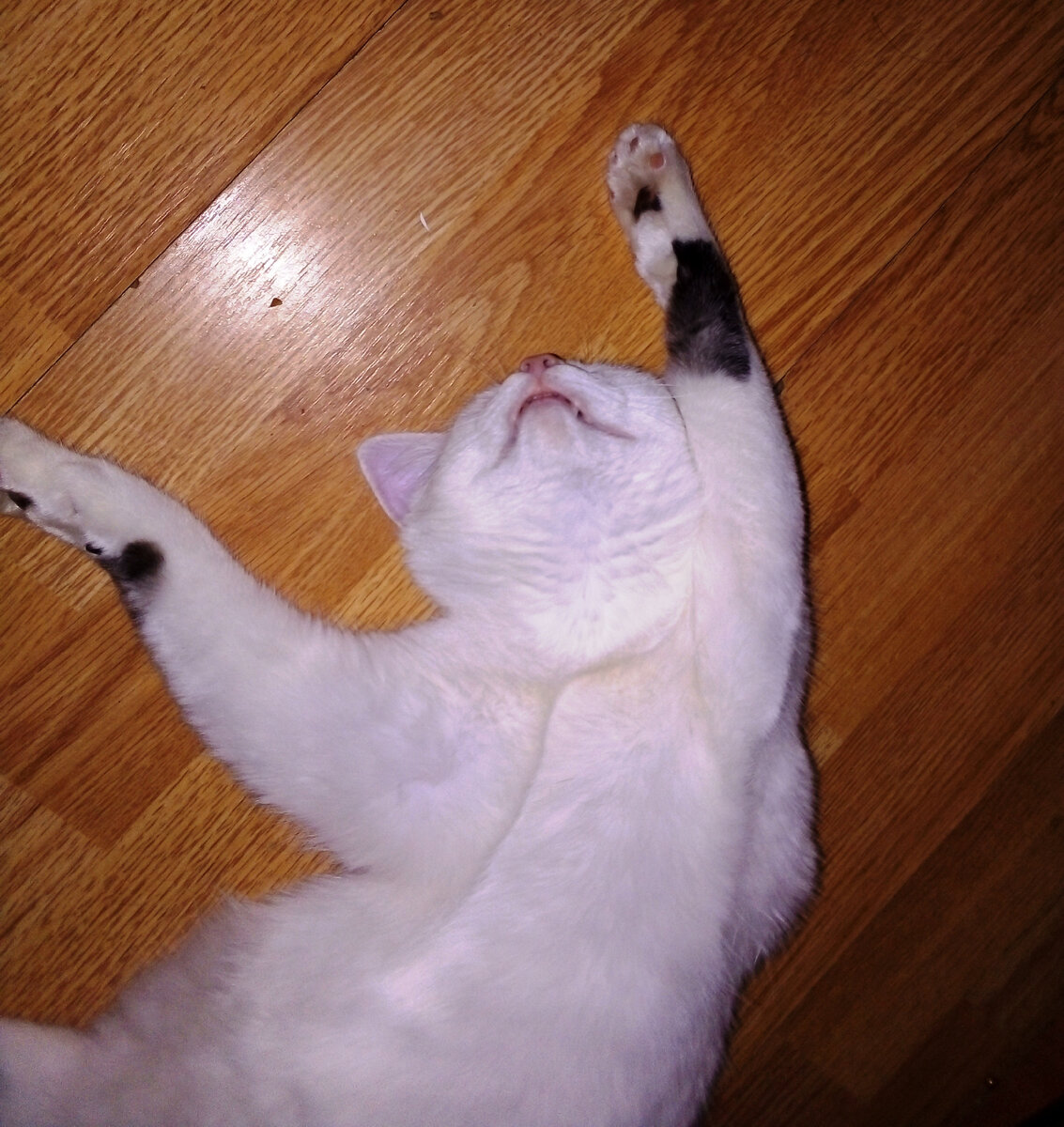 На следующий день со второго этажа донесся топот, грохот и звук падающих на пол предметов. Андрей оценил обстановку: кошка спит на холодильнике, пес шевелит ушами у порога, вывод: Беляк громит спальню. Андрей бросился на верх, пока ущерб не достиг критических величин.
