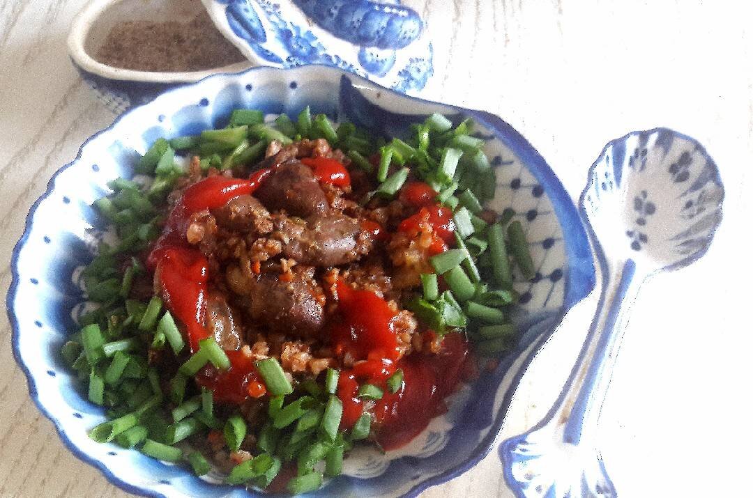 #меню Ингредиенты: гречка ядрица, сердечек кур, горячего бульона или горячей воды, лук, помидор и морковь, соль, перец, зелень, растительного масла, кетчуп Способ приготовления: В чаше мультиварки в горячий бульон (воду) положить сердечки и довести до кипения на режиме "жарка". Отменить режим. Гречку промыть и прокалить на сковороде. Ввести в чашу мультиварки к бульону, установить режим "крупы" (35 мин) и готовить 20 мин. Обжарить лук и морковь до золотистого цвета. Добавить помидор и протушить вместе. Ввести заправку в чашу мультиварки. Перемешать. Готовить до окончания режима.