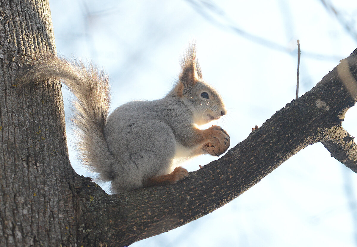 Погода марта - ночью зима, днём весна. Утром термометр показывал зимние -17,4 при ярком солнце! Руки замерзали без варежек, карманы были полны орехами и семечками. В сумке #manfrotto лежал #nikon_d600 с объективом #nikon_70-200_2.8_ED Серый утренний лес был тих и пустынен, что и понятно, кто ж пойдет в выходной день в такую погоду бродить по лесу! Но у белок свое расписание и они, как обычно, уже сидели на ветках и кормушках, грызли семечки и орехи. Желтое весеннее солнце робко освещало сквозь ветви серых деревьев #кафелесноетлт . Самая подходящая погода для фотосъемки. Можно было поиграть и с цветом и со светом. Хорошая освещенность позволяла снимать на коротких выдержках, можно было попытаться снять полет птиц. Хороший свет позволил снять белок достаточно контрастно. На контровом свете хорошо было видно золотистое свечение длинных шерстинок пушистого хвоста. Белка-мама, быстро поедавшая семечки была освещена мягким светом и получилась просто прекрасно! Вишенка на торте - дятел в по