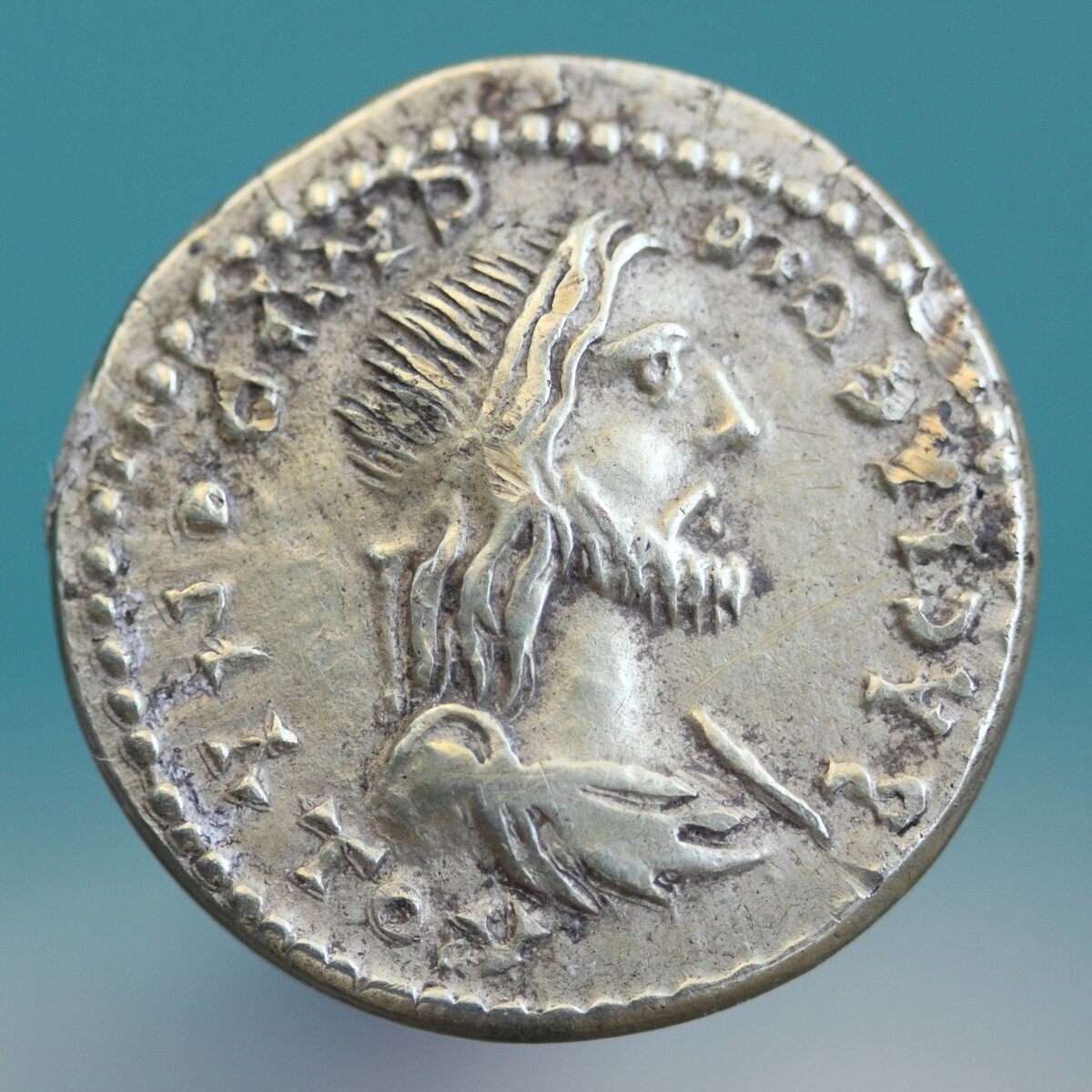 Статер боспорского царя Савромата II 198 года нашей эры. На аверсе портрет царя, на реверсе римский император Септемий Север и его наследник Каракалла. Это так называемый "двухпортретник" Савромата.