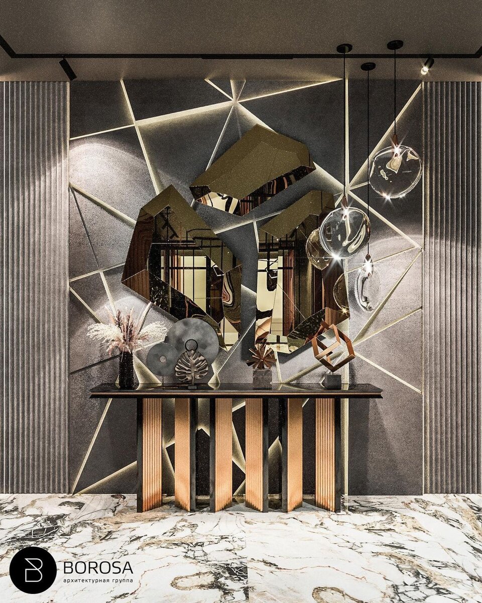 В первом варианте над консолью зеркала от Cattelan Itatia, во втором варианте арт от Studiolopomo!🖤 Какой на ваш взгляд интереснее, 1 или 2? Узнайте больше о нас и наших проектах