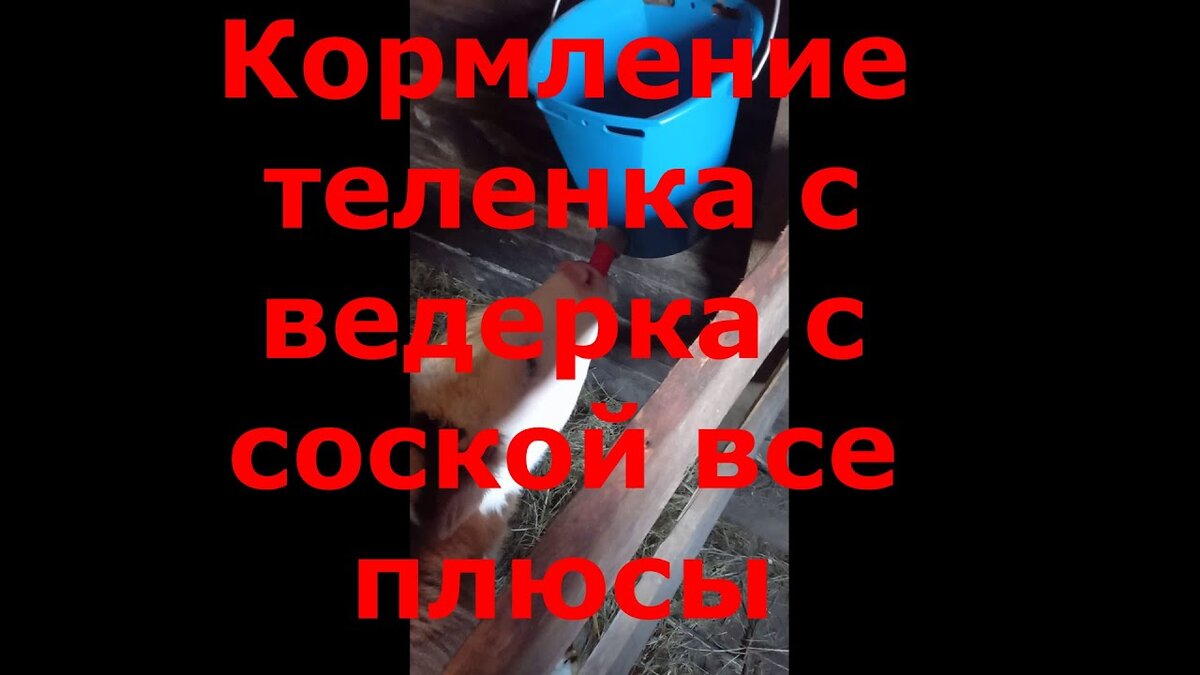 Кормление теленка.Выпаиваю телёнка из ведра с соской.