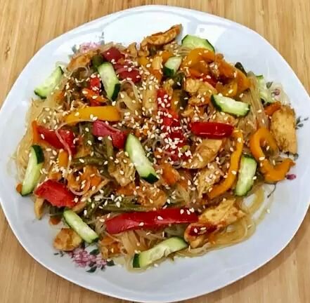 Для данного рецепта Вам понадобится: Наша фунчоза с овощами готова, всем приятного аппетита) Если будут вопросы, пишите в комментариях, буду рада помочь))