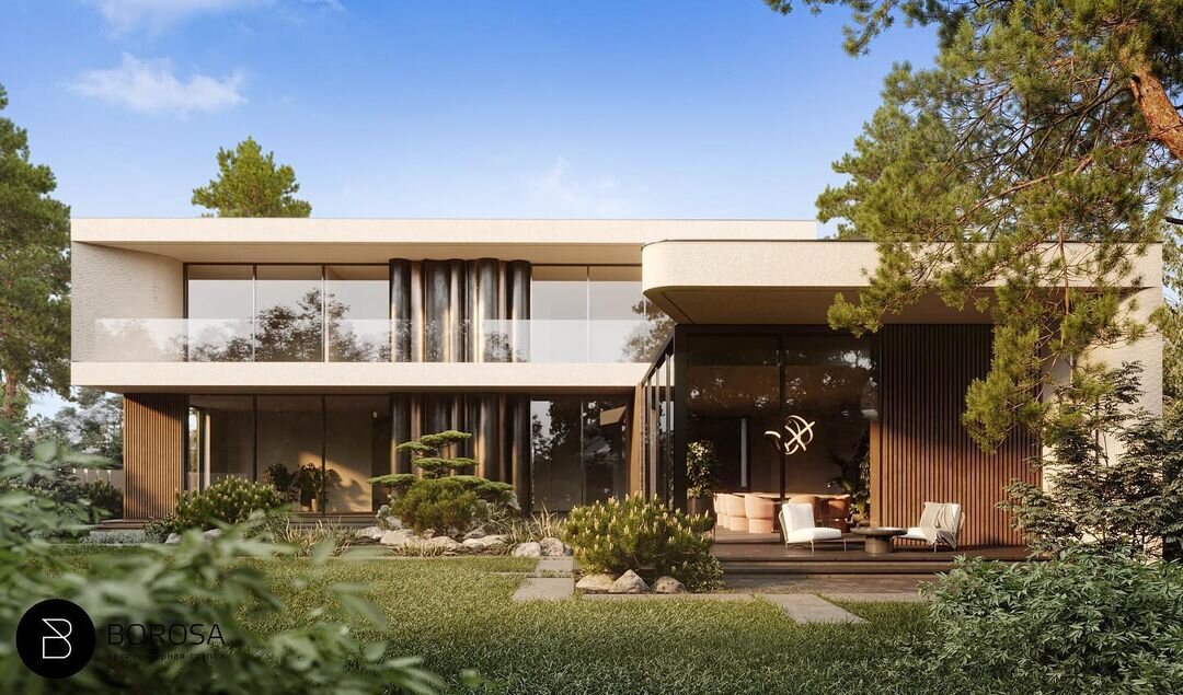 Дом, в который хочется пригласить большую компанию, собрать всех в party-house, который примыкает к основному дому, а затем, благодаря раздвижному остеклению, эффектно превратить это пространство в крытую террасу и устроить шикарное пати во дворе.