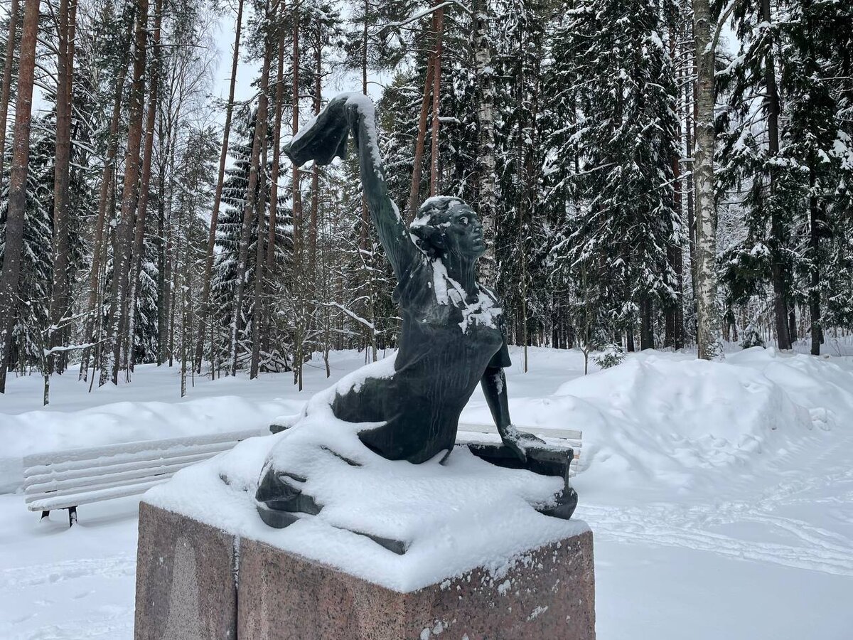 Памятник бросившейся на рельсы французской коммунистке в Зеленогорске. В народе он получил название: «Чьи трусы?»