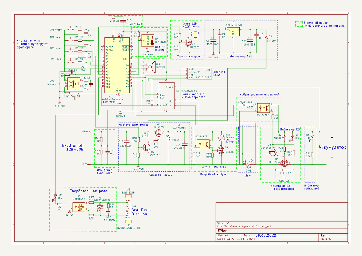 Всем привет. Год с лишним назад, это было в январе 2021 года, мне захотелось сделать зарядное устройство на микроконтроллере, которое не уступало бы по функционалу и удобству пользования, дорогим зарядным устройствам имеющимся в продаже. Выбор пал на Ардуино нано и я начал изучать возможности данного микроконтроллера. Для новичка самое то. Спустя 9 месяцев "родилось" готовое устройство собранное в железе и вполне рабочей программой. Все наработки по данному заряднику являются полностью открытыми и выложены в свободный доступ на Яндекс диск. С месяц назад, когда корпел над прошивкой добавляя новые функции, я осознал что данный зарядник является не просто конечным устройством - сделал и забыл, а состоит из различных модулей. И эти модули можно подключать/отключать , дорабатывать в зависимости от своих нужд. Подключаемые модули - это аппаратные компоненты и соответствующая управляющая функция в программе. Основными компонентами являются: Собрав эти компоненты и подключив внешний блок п