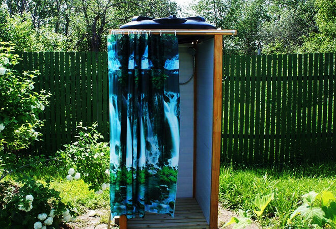 Дачники знают, как после долгого жаркого дня приятно искупаться под уличным душем. Бодрящие водные процедуры на свежем воздухе полезны, восстанавливают силы и закаляют. Такой душ не составит большого труда обустроить на приусадебном участке самостоятельно. Простая конструкция включает в себя кабинку, собранную из подручных материалов, полочку и несколько крючков. Основным элементом сооружения будет бак для душа на дачу, объем которого нужно подбирать исходя из частоты использования и количества проживающих. Выбирая бак, также следует знать, что существует три основные разновидности подобных емкостей. Виды баков для летнего душа Из пластика Основное преимущество такого бака — ценовая доступность. При небольшом весе пластиковые изделия имеют достаточно большие объемы, что делает их оптимальным вариантом, позволяющим обойтись легкой кабинкой. При выборе плоского резервуара, не будет необходимости в сооружении крыши. Одним из достоинств пластика является отсутствие условий для