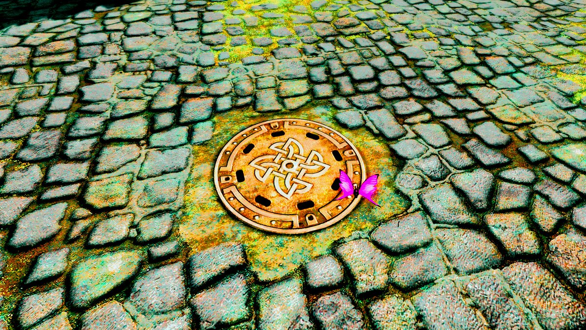 Обзор новых квестов Скайрима. … После зачистки «святых» и «соблазнителей» (квест «Баланс силы») - - Довакина пару раз потревожили остатки банд, пытающиеся отомстить за гибель своих товарищей. А однажды прямо возле Айварстеда на него напала троица наёмников – головорезов, - - нанятых тем самым волшебником – покровителем «святых» и «соблазнителей» Тороном: Нужно было заканчивать с этим, и Довакин, напялив на себя золотую броню (разок схожу на квест, раз уж всё равно улучшил и зачаровал, а для Райки сделаю потом новую); отправился в Солитьюд. Вход в стоки, то бишь, канализацию Солитьюда, был прямо посередине улицы – в покрывающей дорогу брусчатке находился люк, а на нём сидела красивая фиолетовая бабочка. Спустившись вниз, Довакин прошёл по коридору и, спустившись вниз по лестнице, оказался в сказке… ну, или на Дрожащих Островах: Все коридоры были покрыты необычной для Скайрима, но столь привычной в царстве Шеогората растительностью. Вокруг порхали зелёные и фиолетовые бабочки, ме