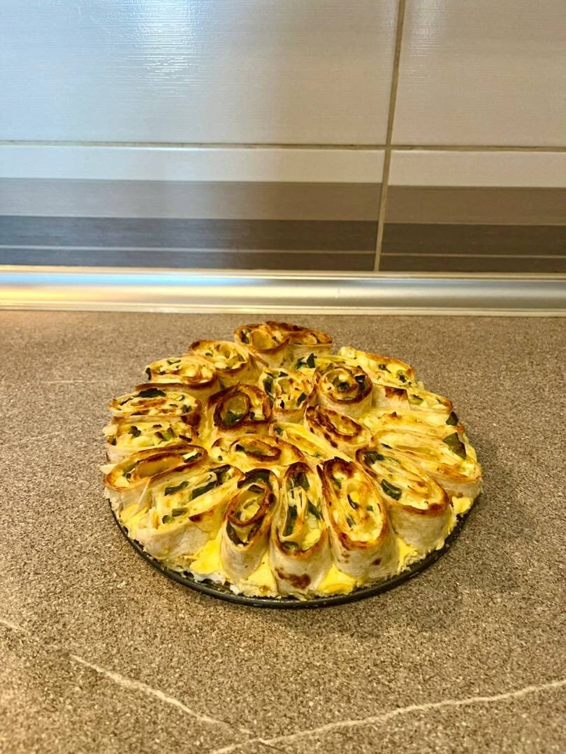 Ингредиенты: Лаваш, Яйца, Сыр, Зелёный лук, Сметана, Молоко, Соль, перец , Яйца для заливки Способ приготовления: Яйца сварить, лук мелко нарезать, сыр натереть. Все смешать добавив сметану, соль и перец. Берём лаваш, сверху выкладываем начинку, равномерно распределяем и заворачиваем в рулет. Используем все лаваши, пока не закончится начинка. Каждый рулет разрезаем на поперечные дольки и раскладываем по форме. Делаем заливку, яйца смешиваем со сметаной и молоком, солим, перчим. Этой смесью заливаем лаваш с начинкой. Ставим в разогретую духовку до 180 гр. на 25 минут. ПРИЯТНОГО АППЕТИТА!!! Заходите на Инстаграм Viktoriianagaev