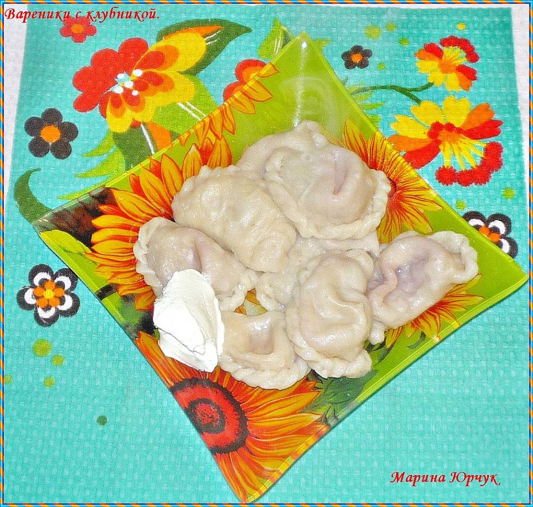 #бабушкинакухня Вареники с клубникой готовят в каждой семье. Это вкусное блюдо чаще всего присутствует в летнем рационе, в разгар ягодного сезона. Но можно готовить и из замороженной клубники. Получаются тоже очень вкусные. Ингредиенты: Для теста: , - вода (комнатной температуры), - соль, - растительное масло, - мука, Для начинки: , - свежая (можно замороженная) клубника, - сахар Способ приготовления: Муку просеять в глубокую миску, в воде размешать соль. В муке сделать углубление, ввести воду и растительное масло. Замесить не сильно крутое тесто. Тесто не должно липнуть к рукам. Накрыть тесто чистым полотенцем и дать постоять 20-30 мин. Клубнику помыть, обсушить, удалить хвостики. Затем я отрезаю кусок теста и раскатываю его в лепешку(только не тонко, а то вареники порвутся и весь сок вытечет). Стаканом вырезаю кружки. добавляю клубнику и по 1/2 ч. ложки сахара. Слепить вареники так, чтобы они при варке не расклеились. Варить в кипящей воде(я добавляю чуть-чуть соли) в течение 3-4 мин