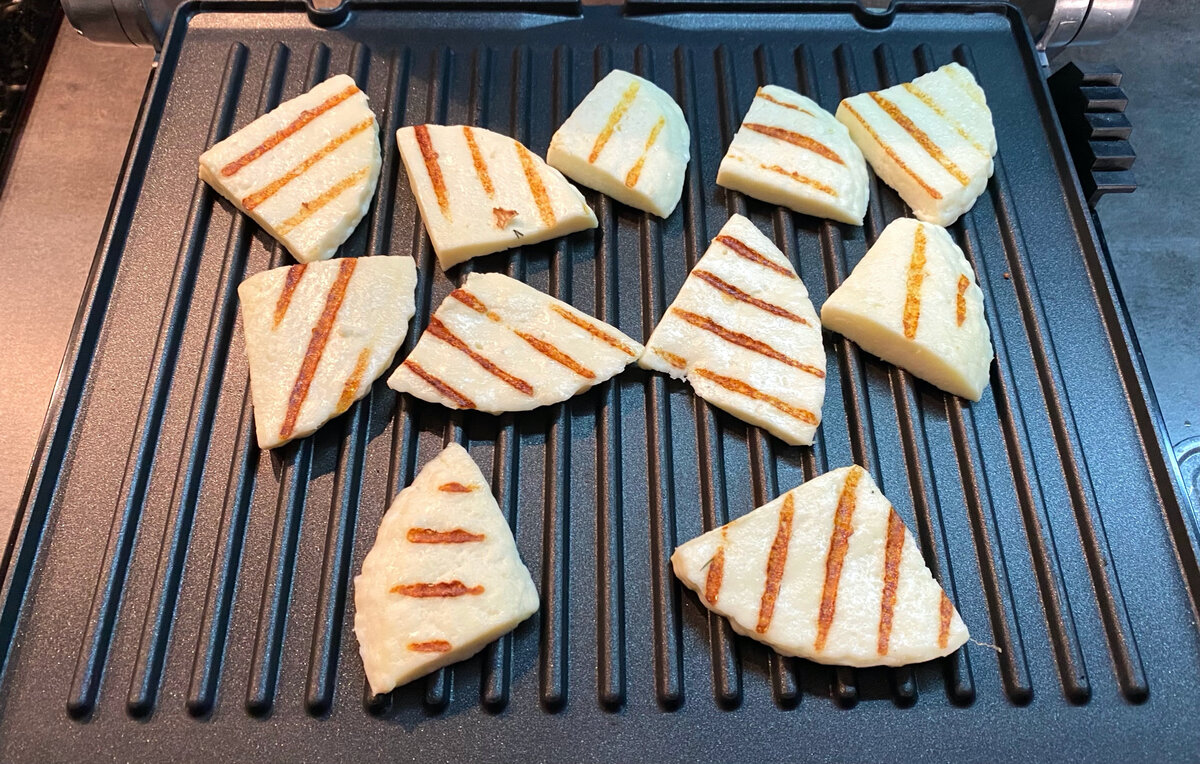 - Нарезала сыр на ломтики и обжарила с двух сторон до румяности.