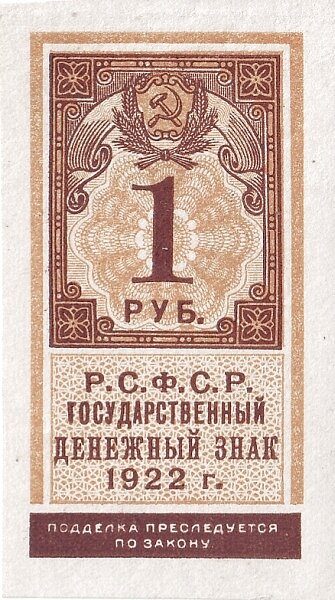 Для устранения трудностей, возникших в ходе введения червонца (для основной массы крестьянства он был слишком дорог, что вызывало рост цен на сельскохозяйственные товары), и в целях борьбы с инфляцией было принято решение о проведении второй деноминации. Декрет 24 октября 1922 года объявил о выпуске серии государственных денежных знаков образца 1923 года. Один рубль новыми знаками, согласно декрету, был равен 100 рублям знаками 1922 года или, таким образом, одному миллиону рублей прочими деньгами. Знаки образца 1922 года оставались в обращении, но декретом было предписано, что всё счетоводство должно вестись в знаках только 1923 года. В конце 1922 года поступили в обращение новые денежные знаки, напечатанные на одной стороне. Номеров и подписей ответственных лиц на них не было. Печатались они достоинством в 1 рубль, 5, 10, 25 и 50 рублей (была подготовлен знак и в 100 рублей). Они датированы 1922 годом. А знаки образца 1923 года появились как раз в 1923 году. Эта серия изначально в