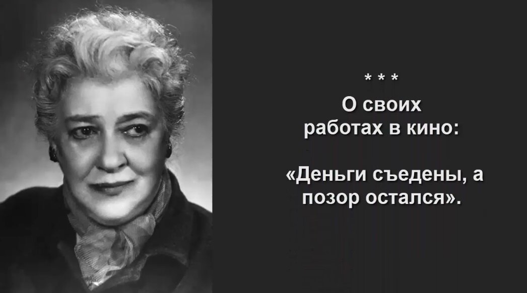 Уверена, что почти все назовут имя Фаины Раневской и это, действительно, она - признанная королева вторых планов. Фраза из фильма "Подкидыш", стала ее своеобразной визитной карточкой "Муля, не нервируй меня". Радовало ли это актрису? Блистательная актриса Фаина Раневская полюбилась зрителям своими острохарактерными ролями в театре и кино. Она всей душой и сердцем любила театр и служила ему, кино для нее стояло на втором месте. Хотя именно кино в сложный момент ее театральной жизни, когда она осталась не у дел, спасло от бедственного положения. Про кино Не все роли устраивали ее, но на тот момент выбирать не приходилось - надо было выживать. И эта фраза актрисы как раз о том времени: Главных ролей в кино у актрисы никогда не было. Она была по праву королевой ролей второго плана, потому что на ее фоне блекли главные героини. Вы вправе со мной не согласиться, но роль мачехи в советском фильме "Золушка" гораздо ярче и "задиристей" роли самой Золушки. Лично я на месте Золушки могу себе пре