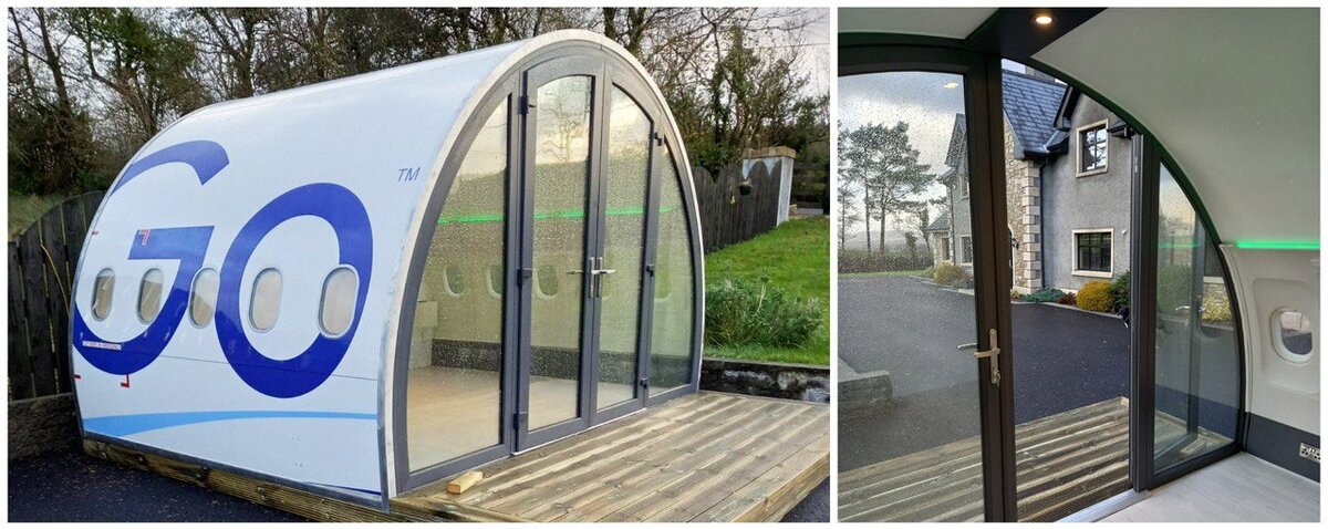 Рано или поздно у самолетов заканчивается срок службы. Ирландец Кевин Ригал и его деловой партнер Шейн Торнтон — оба строители по профессии — перерабатывают старые воздушные судна в элегантные домашние офисы, капсулы для глэмпинга и жилые флигели. После снятия всех запчастей, которые еще можно повторно использовать, остается фюзеляж. По составу он представляет собой специальный сплав алюминия — авиаль. Найти покупателя на такой специфический металлолом не так-то просто, слишком узкая область применения. В ближайшие 20 лет по всему миру из эксплуатации выйдут 15 000 самолетов, и как-то нужно будет решать проблему с их утилизацией. Поначалу Кевин Ригал и Шейн Торнтон и не думали, что их задумка станет прибыльным бизнес проектом. Однажды они решили переоборудовать салон списанного самолета для личного пользования. Но после того, как фотографии “крылатого” офиса попали в социальные сети, на мужчин посыпались коммерческие предложения. На сегодняшний день их компания Aeropod реализовала 11 к