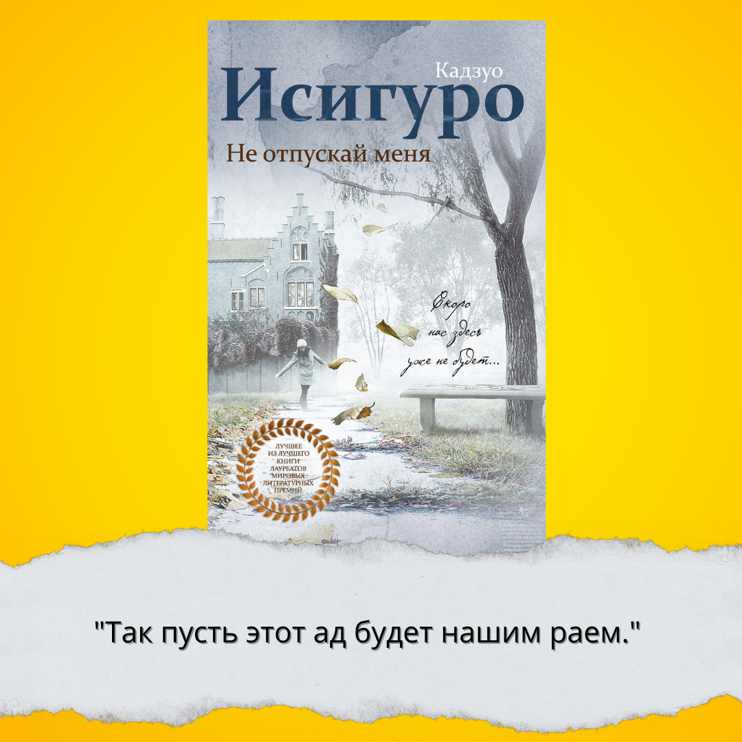 2005 г. — Букеровская премия Журнал TIME назвал "Не отпускай меня" лучшим романом 2005 года и включил в список ста лучших английских романов с 1923 по 2005 год. Повествование в книге ведется от имени тридцатилетней Кэти Ш., которая рассказывает историю своей жизни, начиная с детства в школе-интернате до зрелого возраста. Действие происходит в антиутопической Великобритании конца XX века, в которой люди клонируются для создания живых доноров органов для пересадки. Кэти и ее друзья являются такими донорами. До того, как стать донорами, все они в течение какого-то времени работают «помощниками», заботясь и поддерживая тех, кто уже стал донорами. Правда нам открывается не