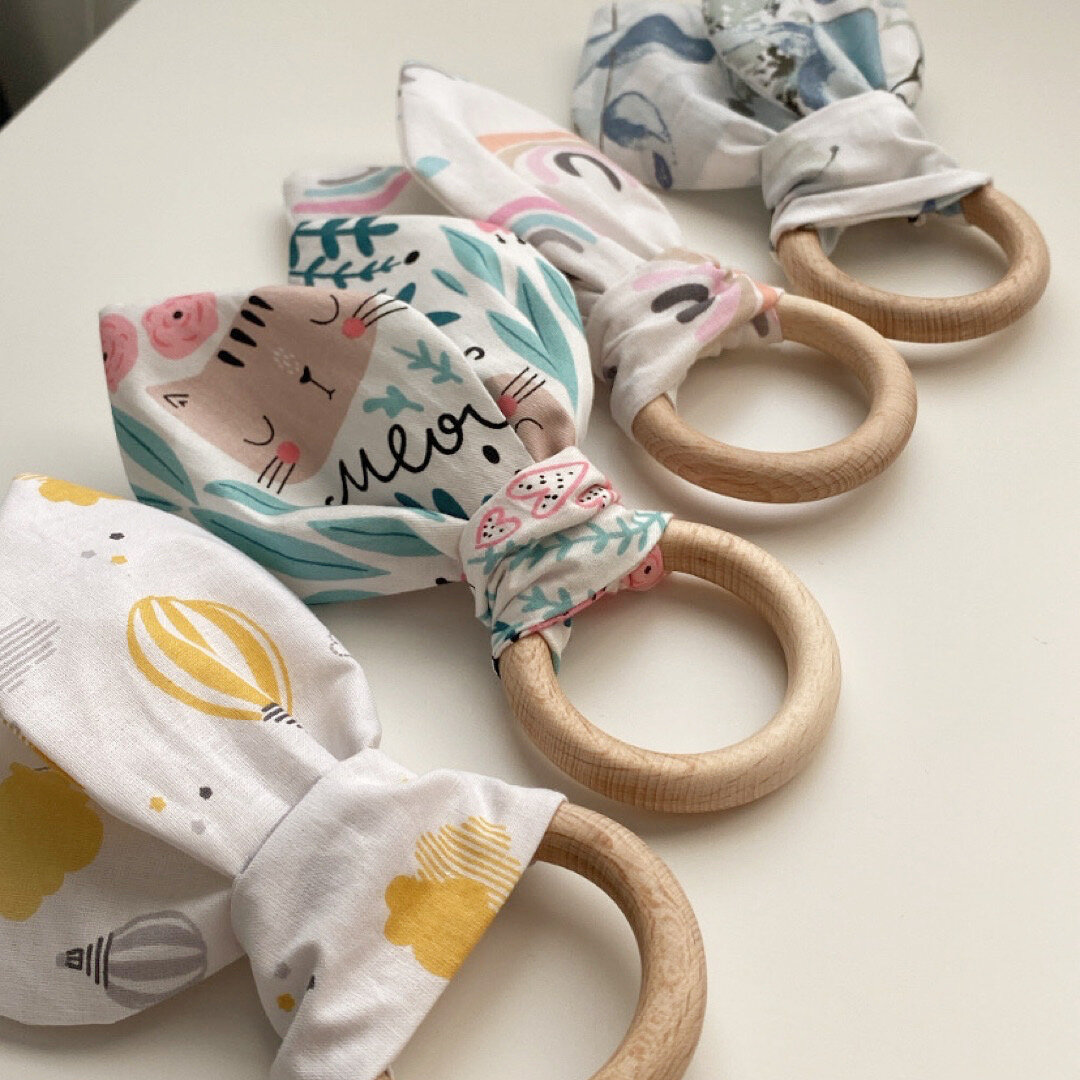 Наконец-то я забрала посылочку с большим количеством дерева, в том числе и с буковыми колечками. Ушки отшиты, на колечки надеты, ждут своего триумфа Материалы: Сами ушки - 100% хлопок Колечко - натуральный бук Внутри ушек шуршащий элемент. Шуршащие ушки можно гладить. Шуршащий элемент поддаётся термическому воздействию (на низких температурах утюга через ткани) Можно стирать и гладить, не боясь деформации шуршащего элемента. В ассортименте появилось 4 вида ушек: шарики, зелёные листья, радуги и мишки 🙌🏻 Ассортимент большой ✨ можно выбрать на любой вкус ☺️
